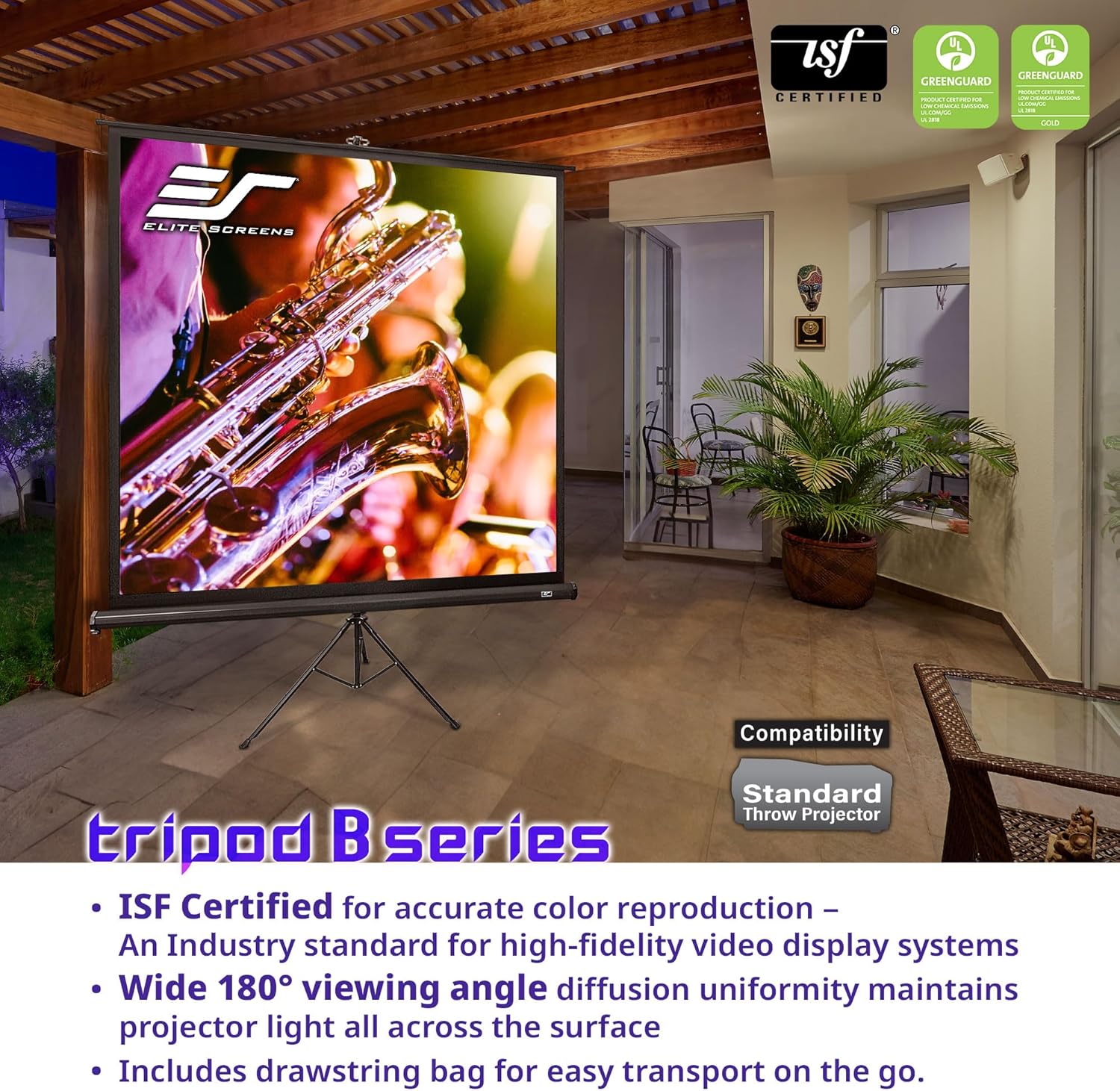 Elite Screens TRIPOD B, 113-INCH, 1:1, Lightweight Pull Up Foldable Stand, Manual, Movie Home Theater Projector Screen, 4K / 8K Ultra HDR 3D Ready, US Based Company 2-YEAR WARRANTY, T113SB, black