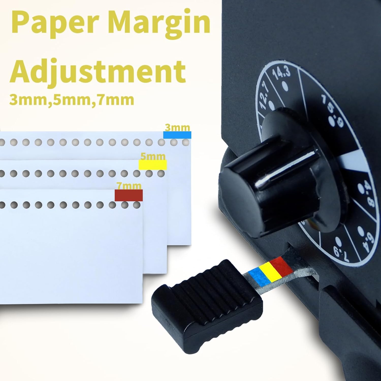 - Humanized Design - One handle for punching, another for binding, both working with low force; Releasable 1-34 blade for punching different document sizes. Durable Metal Construction for Long-Lasting Use.