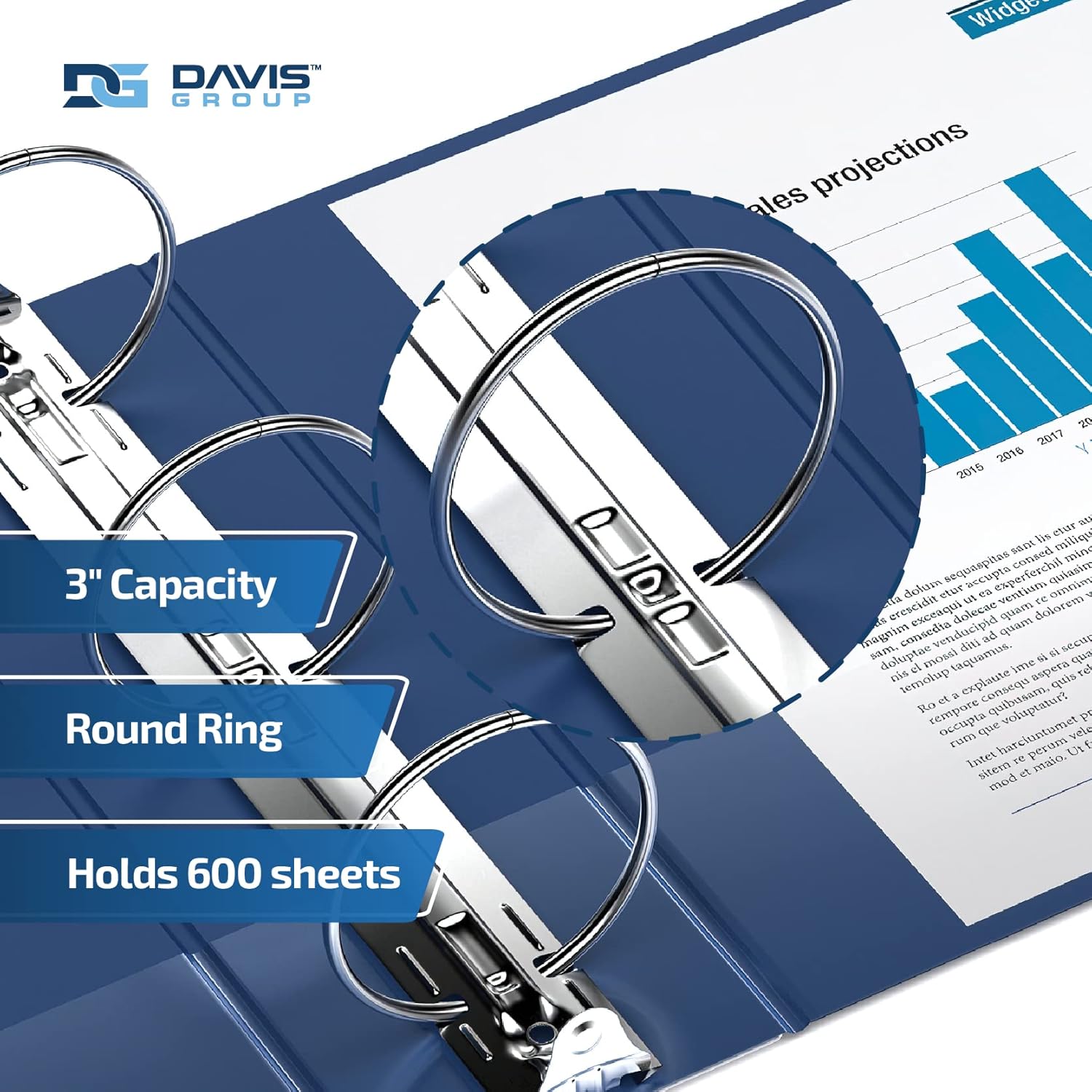 - ROUND-RING BINDERS: These big binders feature round rings and come in 4 sizes: 1", 1.5", 2", and 3". The 1-inch binder holds 200 sheets, the 1.5-inch binder holds 275 sheets, the 2-inch binder holds 400 sheets, and the 3-inch binder holds 600 sheets.