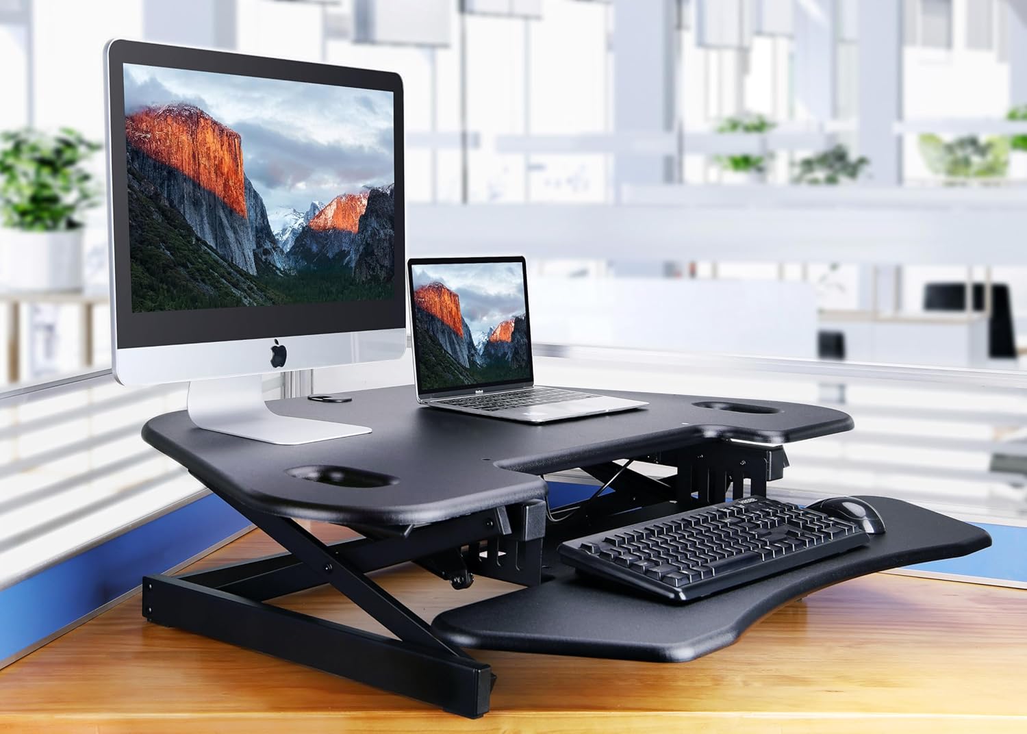 - ERGONOMIC KEYBOARD TRAY: The 4.5" spacing between keyboard tray and desktop helps keep arms and wrists in an ergonomic position to prevent neck and back strain while sitting or standing.