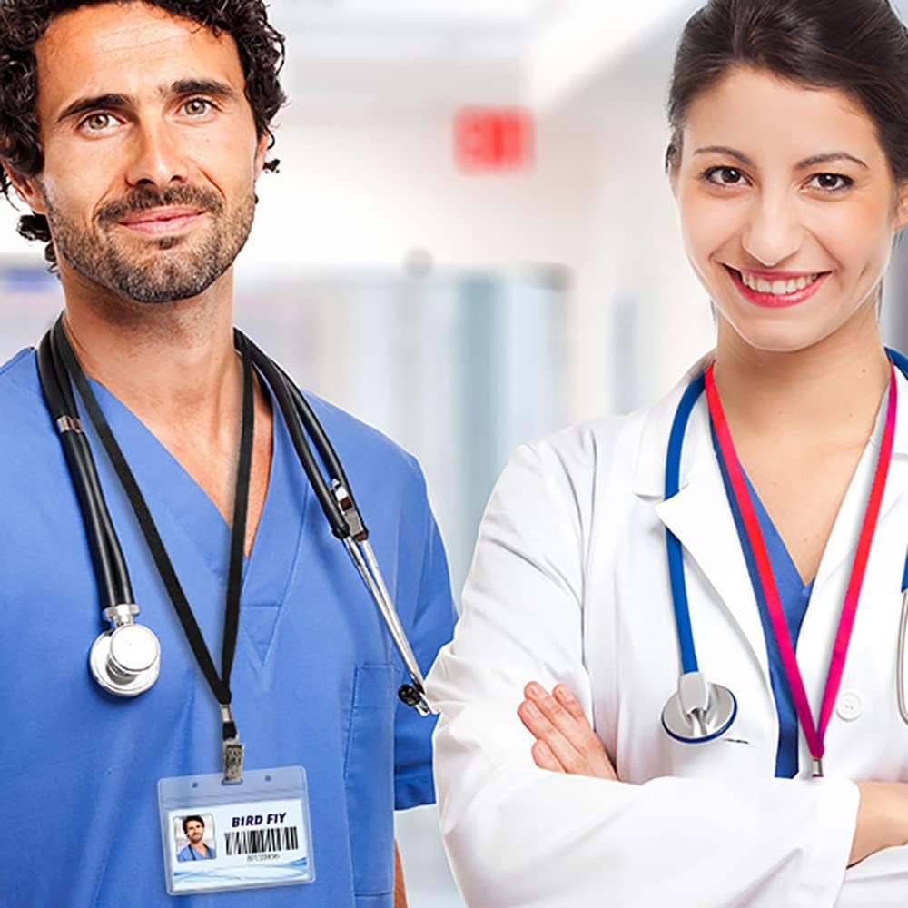- Badge holders dual-use hanging slot/holes design, the middle slot for lanyard, keychain or retractable carabiner reel clip, the both side holes for the cord/strap/string/thread.