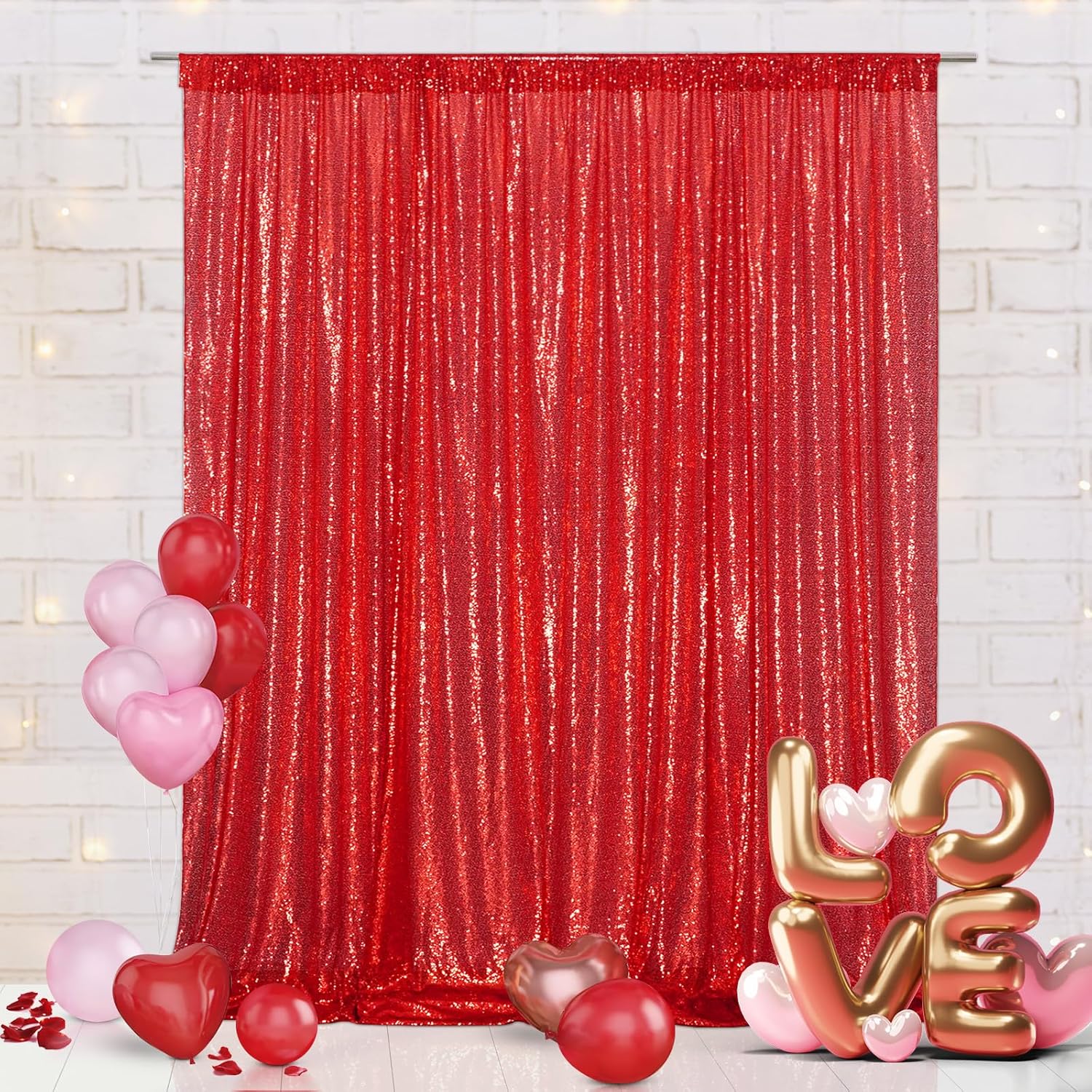 Eternal Beauty Red Sequin Backdrop, 6x8 Ft Glitter Background Curtains for Christmas Shimmer Photography Party Wedding Birthday Back Drop Decor