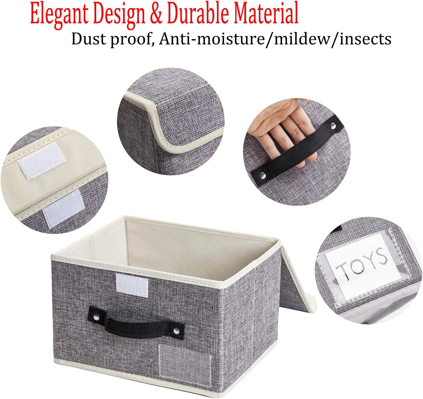 - 【Elegant & Foldable Design Storage boxes】: Modern and simplistic designed to match interior decor and style in any room for your home or office.Grey color enhance your room decor, Space-saving design,you can fold up the fabric storage bin without use,easy to assemble or fold up. Handle design, the decorative storage bins ease to carry or pull off and out of shelves, with Clear label holder, Easy Labeling for convenience and personalization. Velcro closure make storage easy.