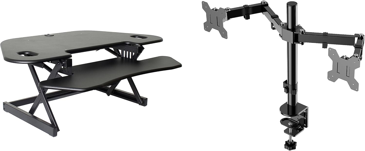 - STANDING DESK BUNDLE: Includes a corner standing desk converter (R CADRB-46) and a Dual Monitor Arm (R DM2), extend your health benefits in comfort and reduce joint stress and strain while you work, provides long standing comfort.