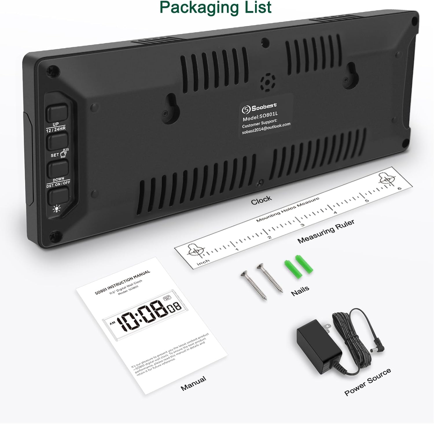 - 𝗟𝗲𝗱 𝘀𝗰𝗿𝗲𝗲𝗻 𝘄𝗶𝘁𝗵 𝗹𝗮𝗿𝗴𝗲 𝗱𝗶𝗴𝗶𝘁𝘀 𝗱𝗶𝘀𝗽𝗹𝗮𝘆 - Soobest LED digital wall clock has a 10 inches large led screen display with 3 inches eye-catching number display, there is no doubt that you can see it from any angle or at any indoor-distance, and the digit size is also big enough to recognize. Besides, you could check date & year on the screen, no worries about missing important appointment.