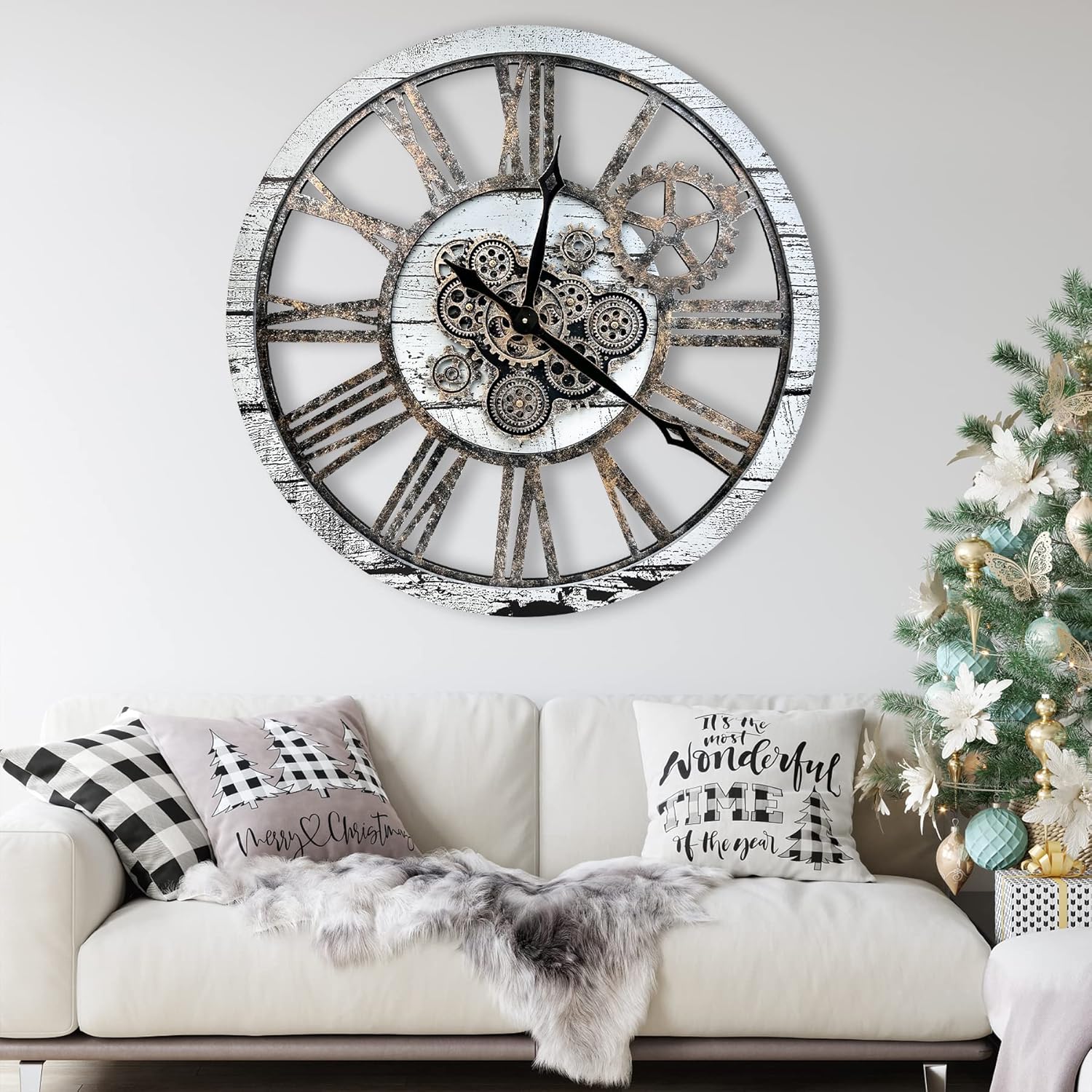 - WIDE APPLICATIONS: Oversized rustic wall clock is not only a timepiece, but also a piece of artwork, greatly adding charm to a room, like living room, farmhouse, fireplace, bedroom or dining room, studio, gallery, loft, cafe, bar, club, etc. Decorative wall clock will become an instant conversational piece for the moving gears and how cool it looks. Also awesome gifts for families or friends.