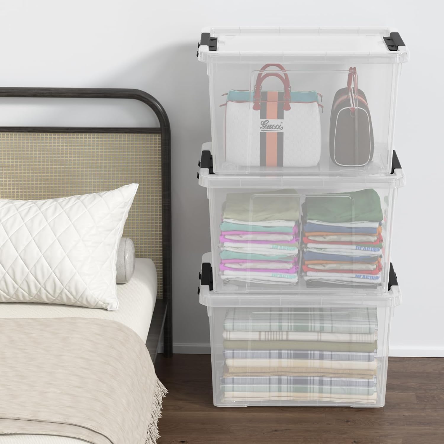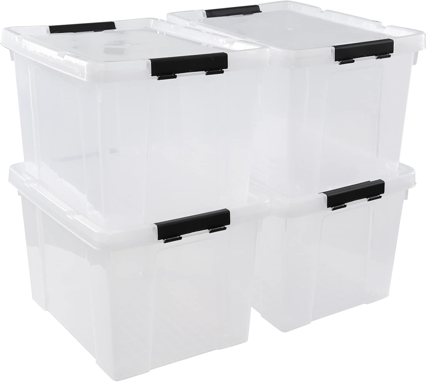 - Total 4 packs clear latch storage boxes with lids