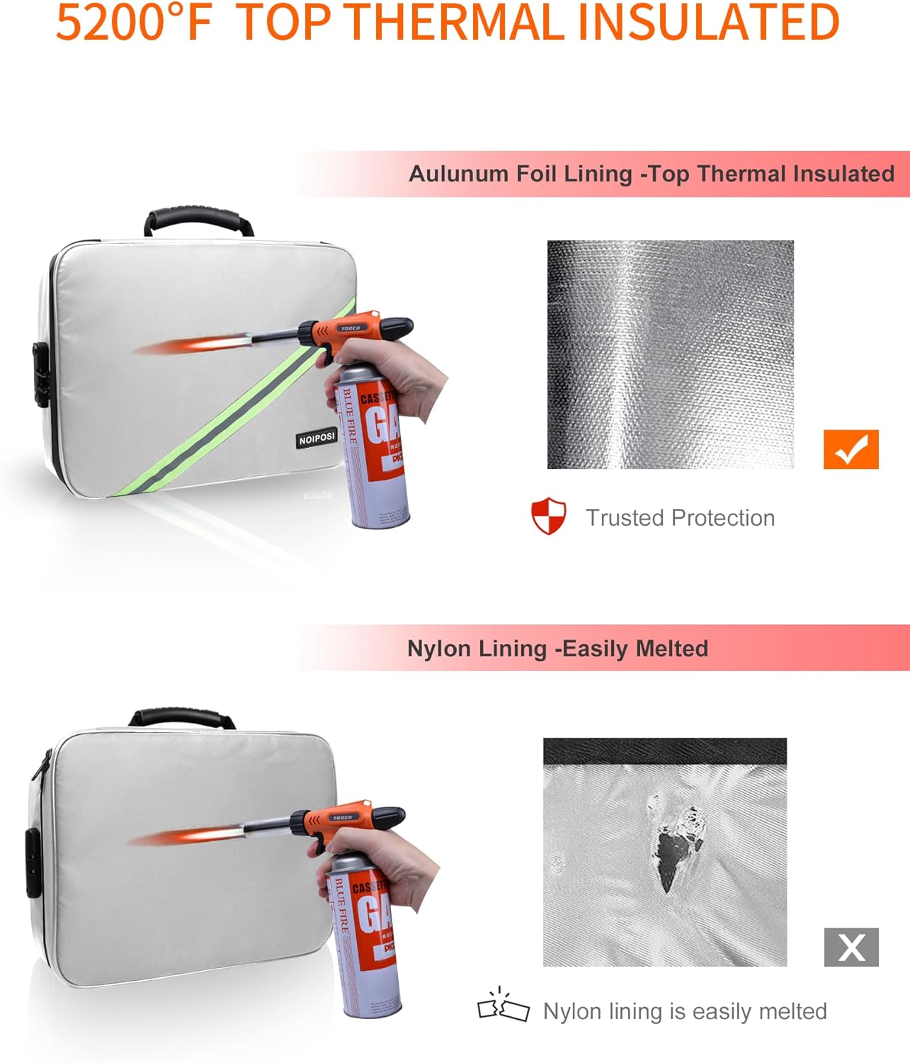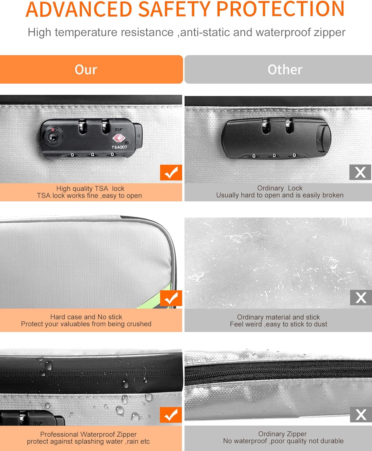 - Aluminum Foil Lining for Better Fireproof Protection: important document holder is made of silicone coated material and aluminum foil which withstand the temperature up to 5200℉ .Aluminum foil lining isn’t easily melt under high temperature after several tests .Fireproof document organizer offers your valuables the double safe protection.Unique reflective strip design, even at night, you can find your fire document storage immediately. The reflective strip point is your right direction