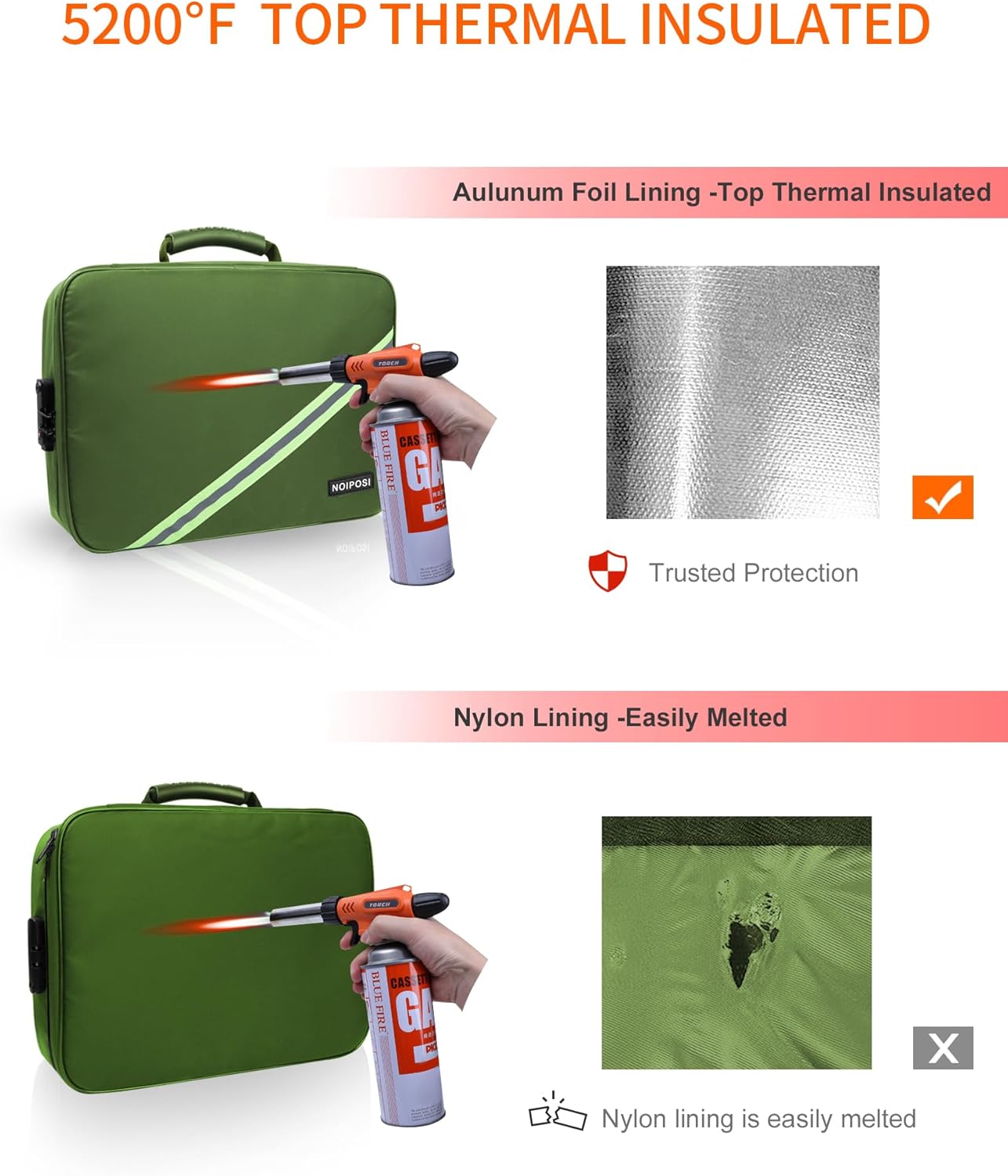 - Aluminum Foil Lining for Better Fireproof Protection: important document holder is made of silicone coated material and aluminum foil which withstand the temperature up to 5200℉ .Aluminum foil lining isn’t easily melt under high temperature after several tests .Fireproof document organizer offers your valuables the double safe protection.Unique reflective strip design, even at night, you can find your fire document storage immediately. The reflective strip point is your right direction