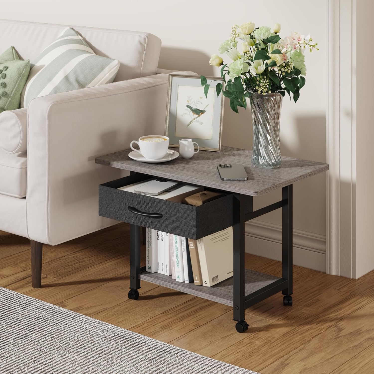 - 【Large Printer Stand】Size:22"L×15"W×15.8"H. Large spacious tabletop can fit most printers: fax machines,3D printers,scanner and other office supplies. Not only a printer stand for desk, you can use it as a end table for the bedroom,living room, and a desktop organizer for your kithcen, office.