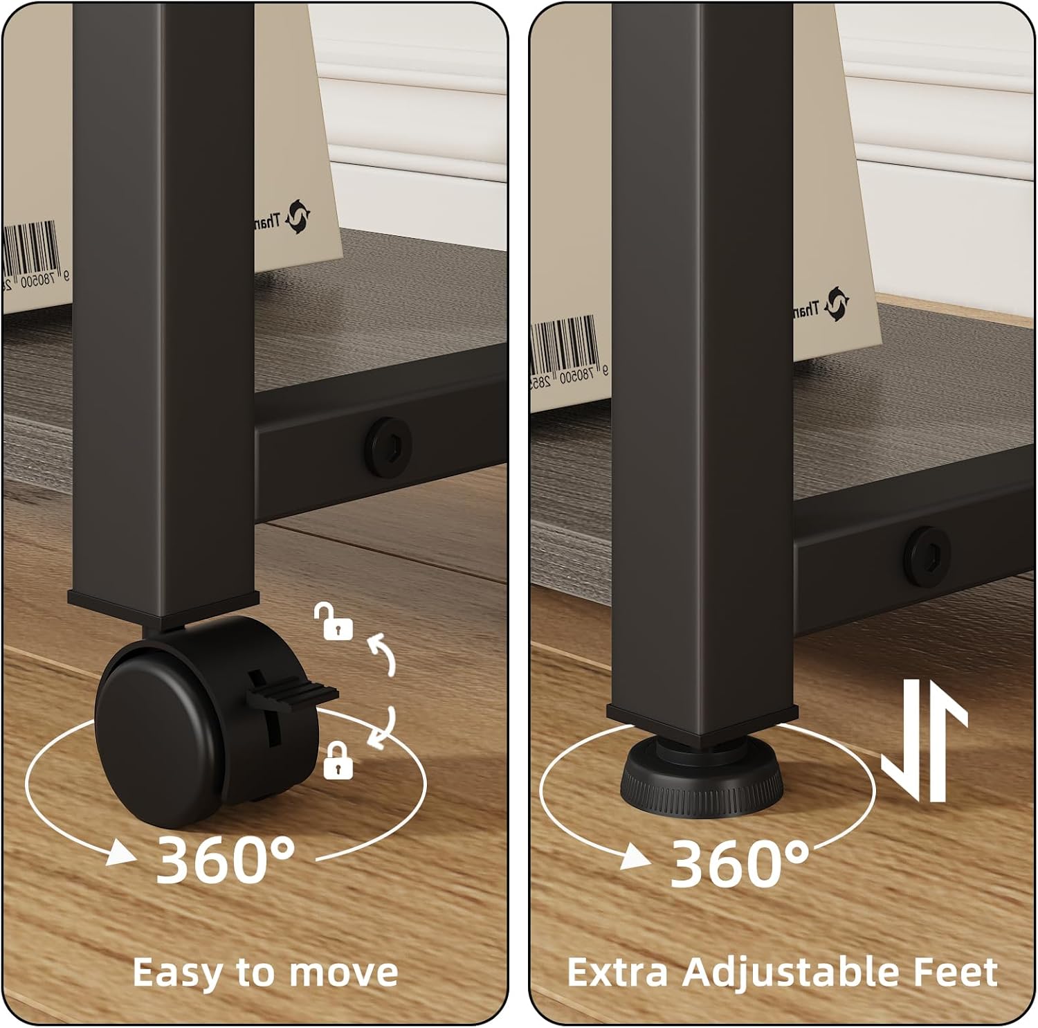 - 【Lockable Printer Cart】360° rotation rolling printer cart equipped with 4 lockable caster wheels, can offer mobility and stability for secure and convenient move. Package come with 4 replacement adjustable feet to fit your different demand.