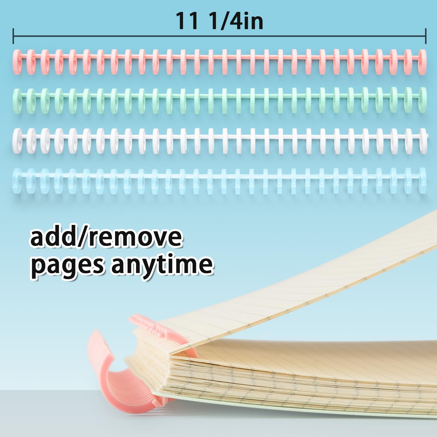 - 【Binding Spines Easy to Add/Remove Pages 】10 pcs of 30 Ring Binding Spines are easy to add, remove, replace sheets at your will. You can easily trim it to make your customed planners or journals. 4 colors available: pink, translucent, mint gree and white. Diameter 1/2 inch (13 mm),fillable up to 85 sheets. For the black opening zipper, you can stick your finger in it and slide through the spines to open the binding coils. Of course you can also use your finger to open and pinch to close the ring