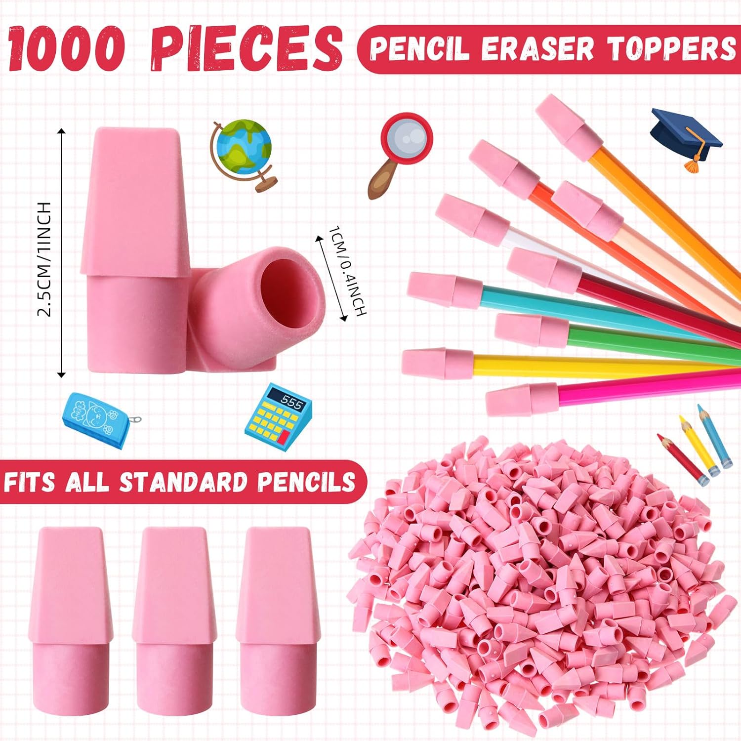 - Package Include: you will receive 1000 pieces pencil top erasers in the package, which are available in pink; The abundant quantity can satisfy your different use and replacement needs in daily life
