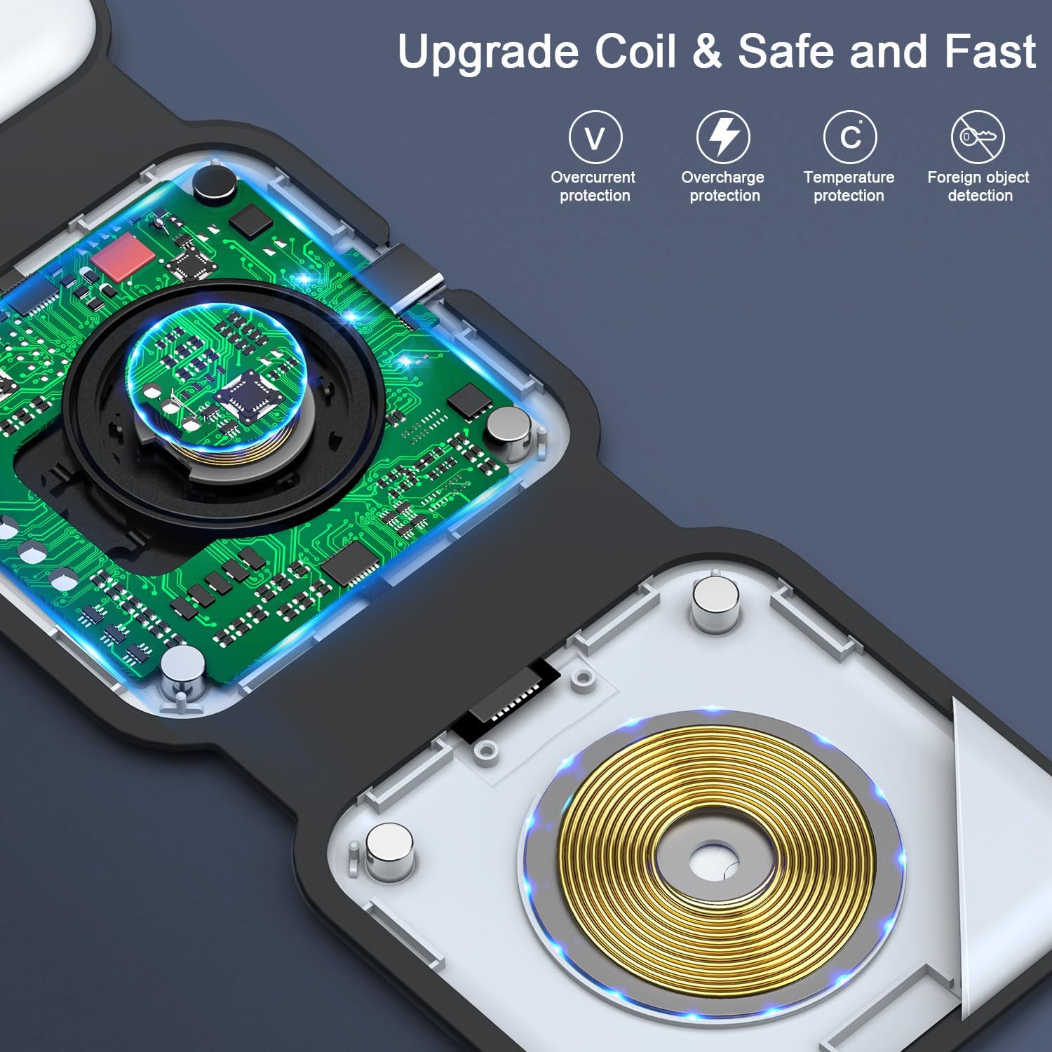 - Pay Attention to Family Health: Many other phone wireless charging station do not take anti-electromagnetic measures, and internal radiation will spread, causing harm to the human body. This folding charger uses a professional magnetic isolation sheet inside, no radiation leakage, the elderly and children can use it with no worry. This wireless charging station for apple products strive to protect the safety of you and your family.