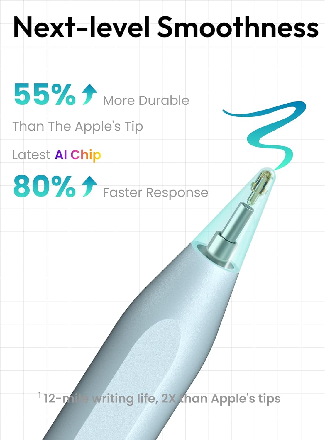 - 【0.1 mm Pixel Precise Without Delay】: The upgraded smart chip delivers pixel-level accuracy of 0.1 mm with high responsiveness, no breakpoints, and no delays. You can enjoy writing small words and drawing fine lines with ease, just like using a real pencil! NOTE: The iPad stylus does not support pressure sensitivity