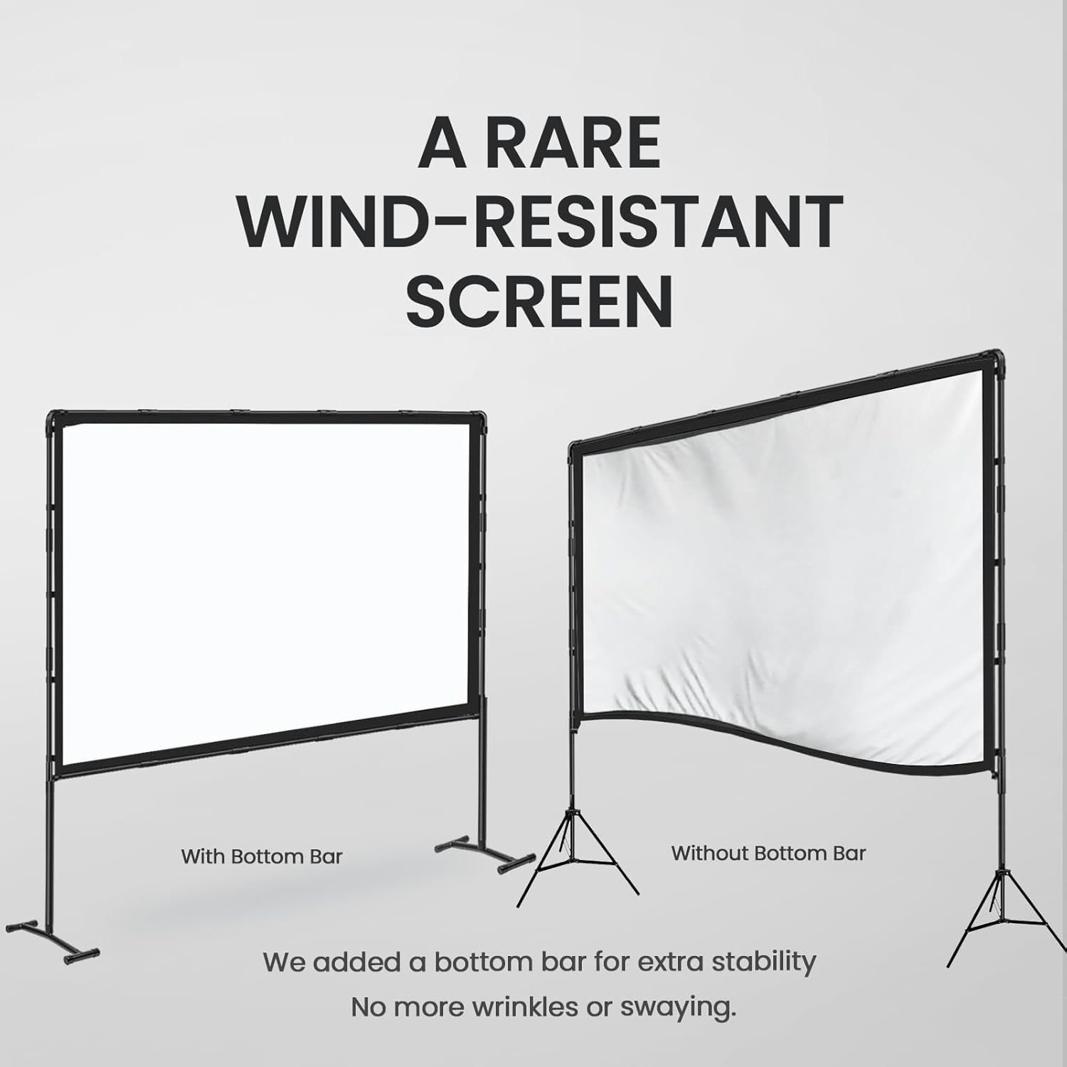- 【Portable and Easy to Maintain 】 Made from foldable, machine-washable materials, the screen is lightweight and easy to carry. Whether for backyard gatherings or on-the-go adventures, you can take the entertainment with you.