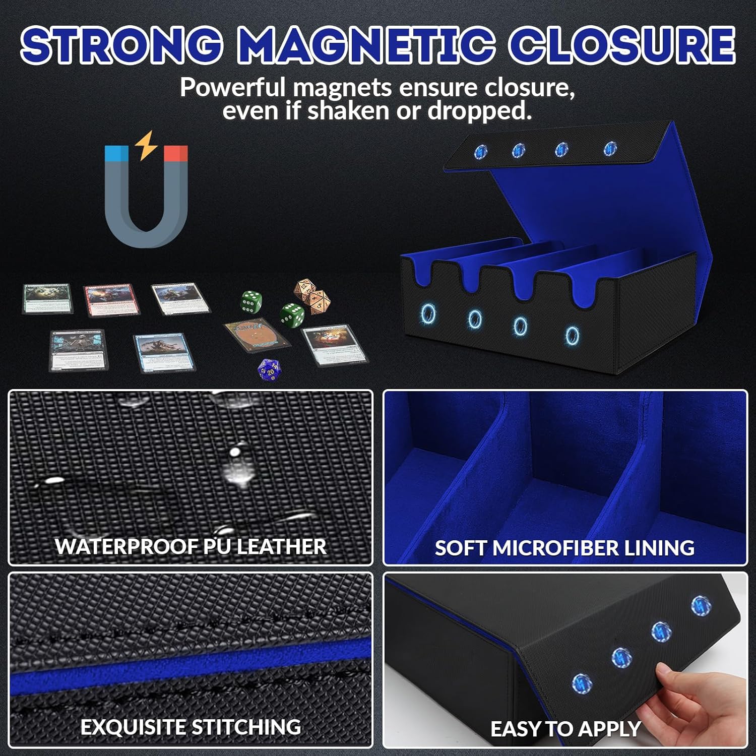 - ššš š§ššš¢š ššš«š ššš¬š - This deck card case is equipped with powerful magnetic closures. When the lid is closed, it firmly adheres to the box, easily withstanding various shaking and movement scenarios. This effectively prevents the box from accidentally opening and spilling the cards inside.