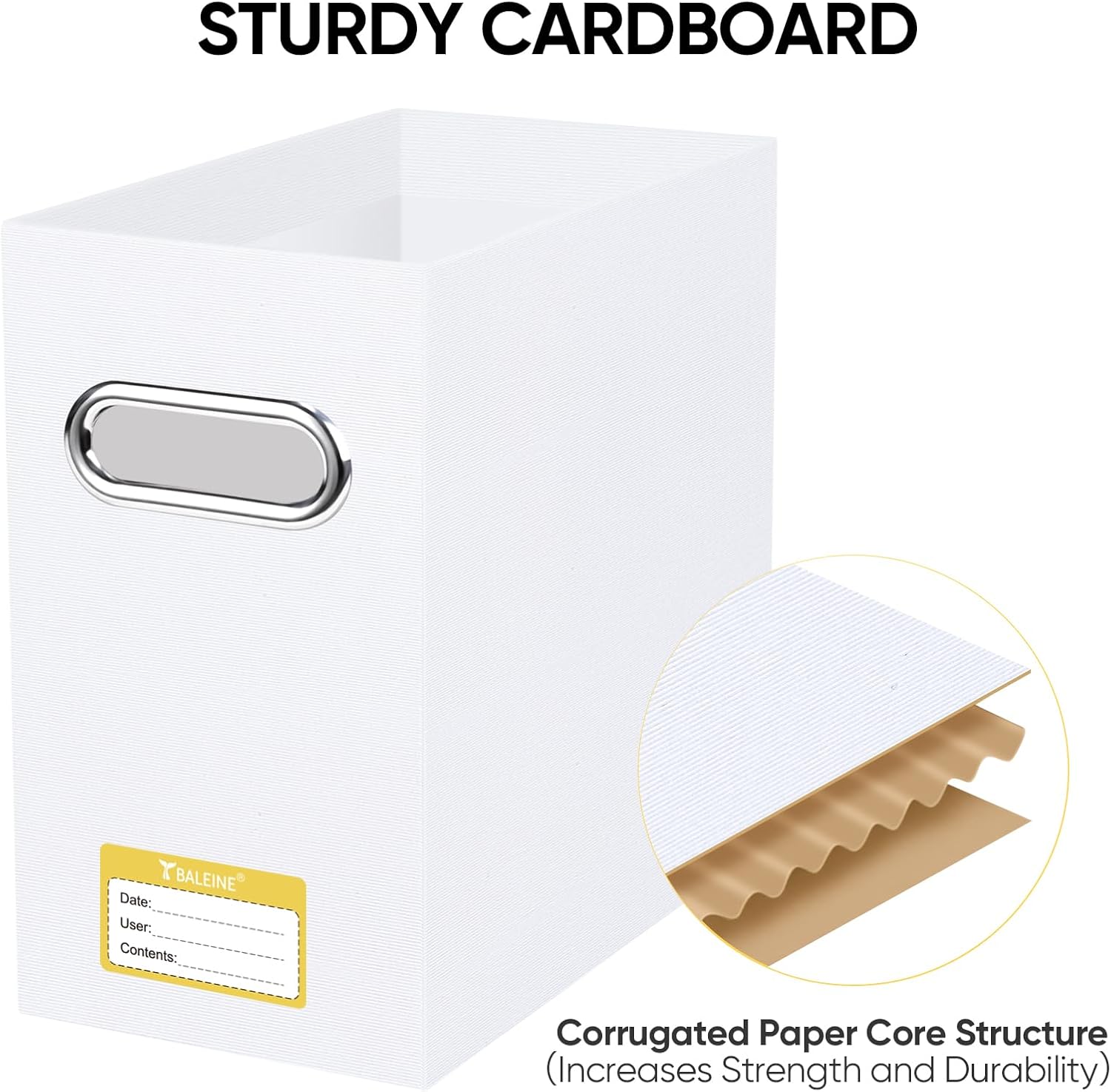 - Durable Material: This file organizer has a strong corrugated paper core for excellent support; The stainless steel handles on the front and back enhance durability and make it easy to move your files