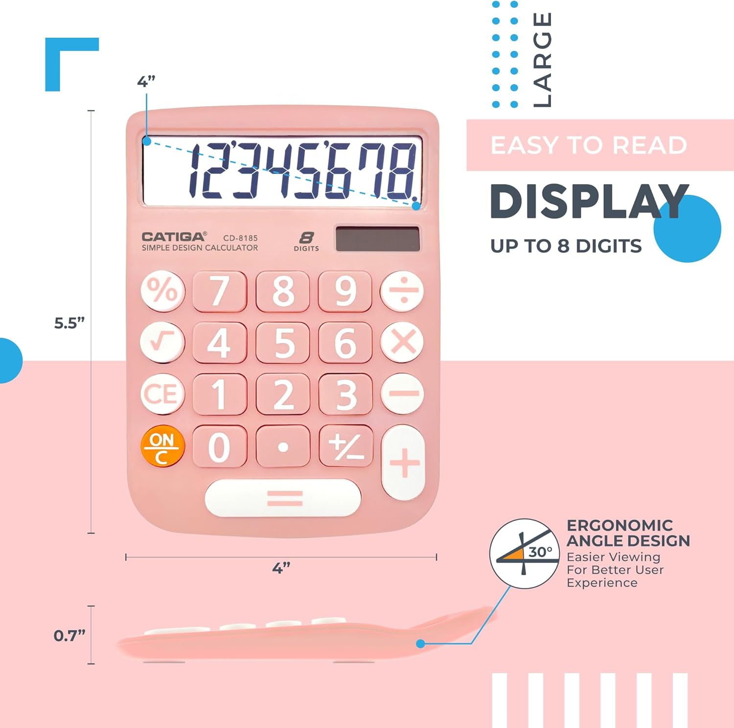 - EASY-TO-USE DESIGN: With its large screen, this calculator is made for convenient and comfortable everyday use. Its tilted and angled display allows you to easily see your calculations without straining your eyes