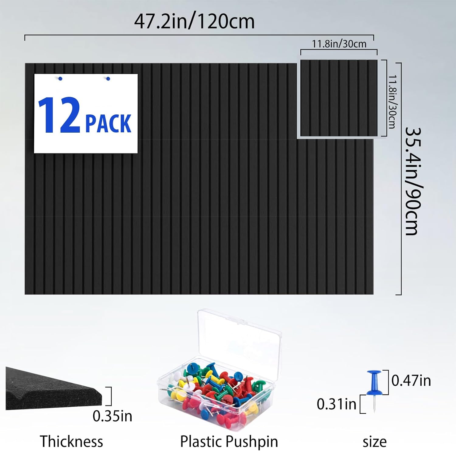 - Enhanced Package:12 pieces of 11.8"x11.8" Large Cork Board for Walls,A box of push pins, pinseasy to customize to any size you need. Very suitable for creating unique layouts that traditional hardwood boards cannot match.