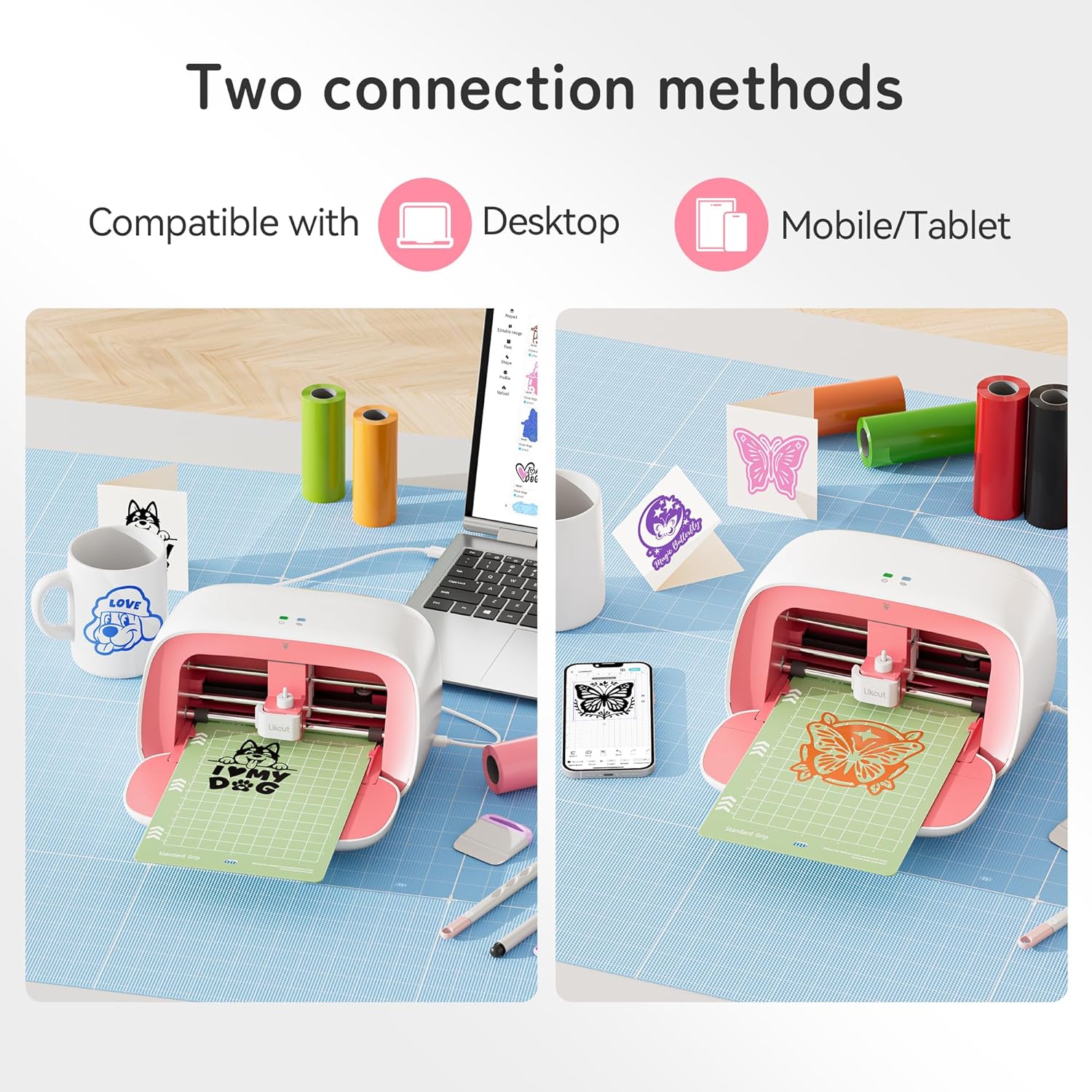 - Multiple Connectivity: Cutting made easy with Likcut S501 Cutter Machine! Enjoy seamless connections across mobile, tablet, and PC devices. Experience quick DIY projects wherever you are. Applicable to sticker craft, label print and vinyl cut