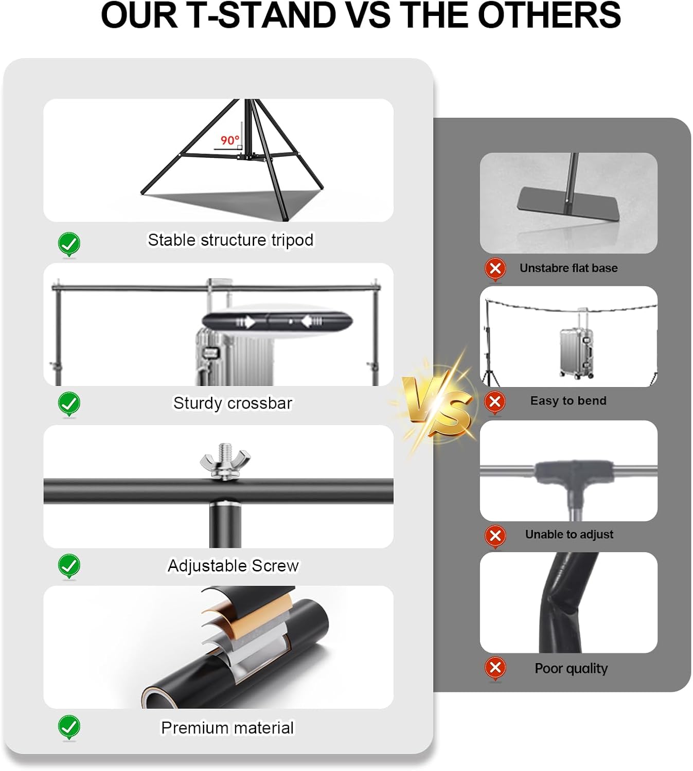 - Ideal for Multi-Scene Applications: The white backdrop and adjustable T-shaped stand are designed to work seamlessly together, making them suitable for a wide range of scenarios, from professional studio shoots to creative DIY projects