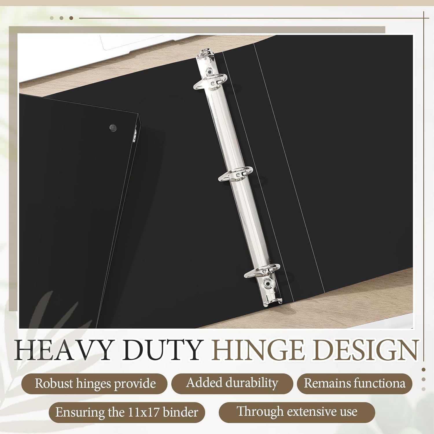 8 Pcs 11 x 17 Inch 3 Ring Binders 2 Inch Rings Heavy Duty View D Ring Binders Economy Holds 11" x 17" Paper for Artwork Blueprints, Office, Home, Work Places(Black)
