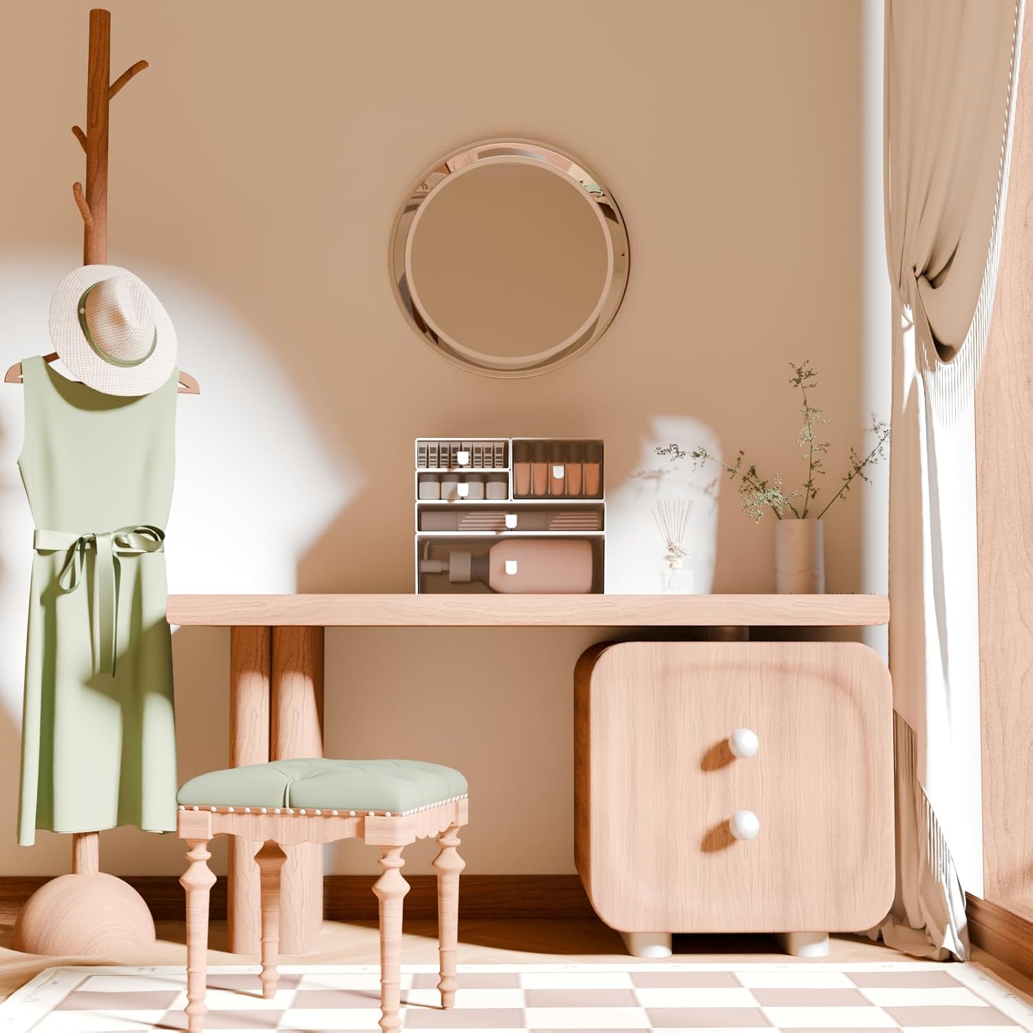 - Widely Applicable: Makeup storage organizer suits lipstick, blushes, foundation, bronzer, mascara, eyeshadow, nail polis, Can also be used to store jewelry, sunglasses, personal accessories, grooming tools, keepsakes. And this drawer organizer can also accommodate all office supply accessories, such as pen, paper clip, pencil, marker, ruler, eraser, scissors, etc. It can also store children's toys and handmade tools, and DIY products. Coffee pods, tea bags, etc. are also suitable for being classified and stored in these drawers.